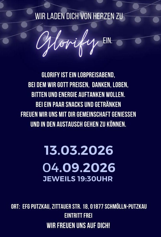In einem unserer Lieder heißt es „Freude, Sorgen, Kräfte teilen …“ Ja, das ist es, was uns als Gemeinde am Herzen liegt. Das soll unserem Glauben Ausdruck geben. Die Freude, die wir und andere kennengelernt haben, teilen, bei Problemen und Nöten gemeinsam nach Lösungen suchen und einfach für andere da sein. Das möchten wir.